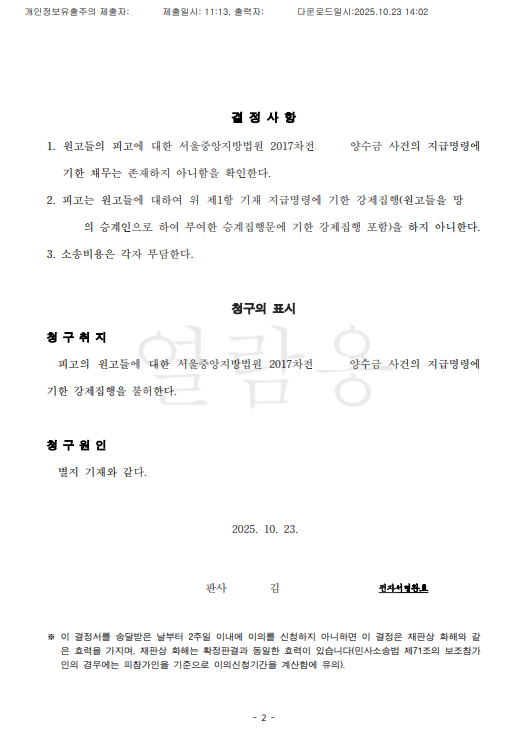 X는 2025년 9월경 법원으로부터 승계집행문을 송달받았는데 그 내용은,