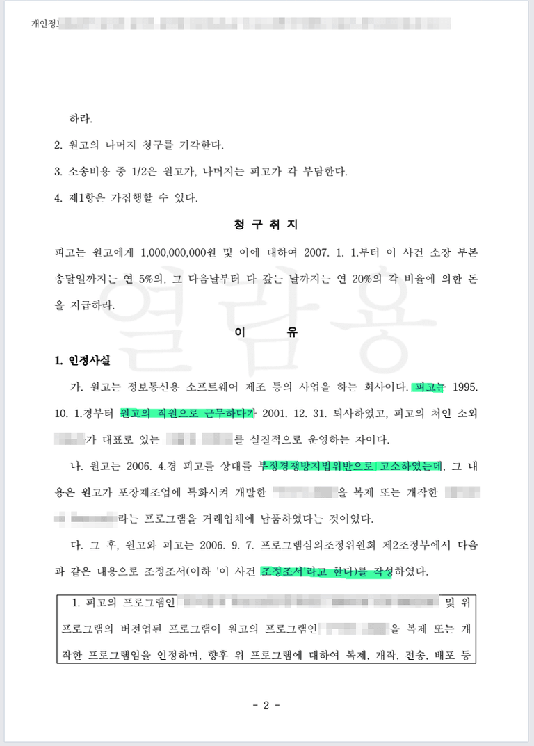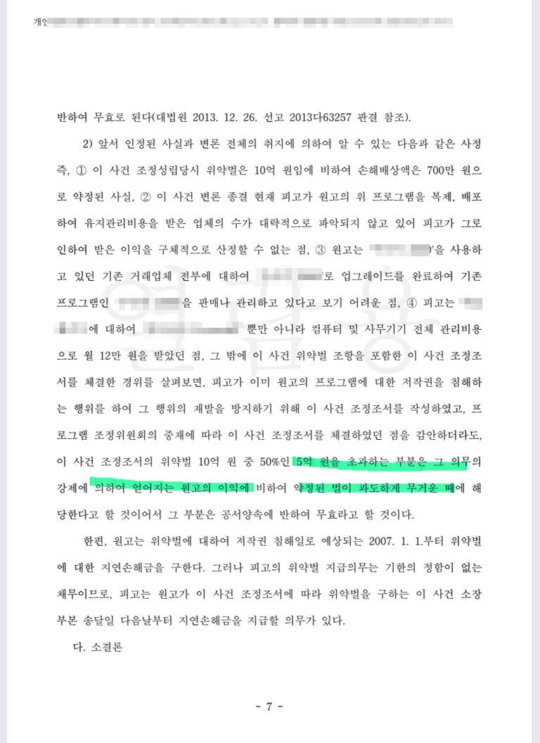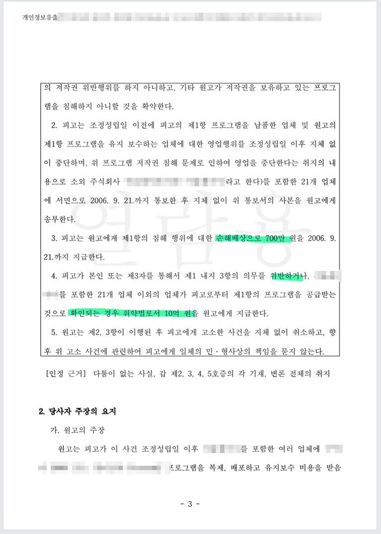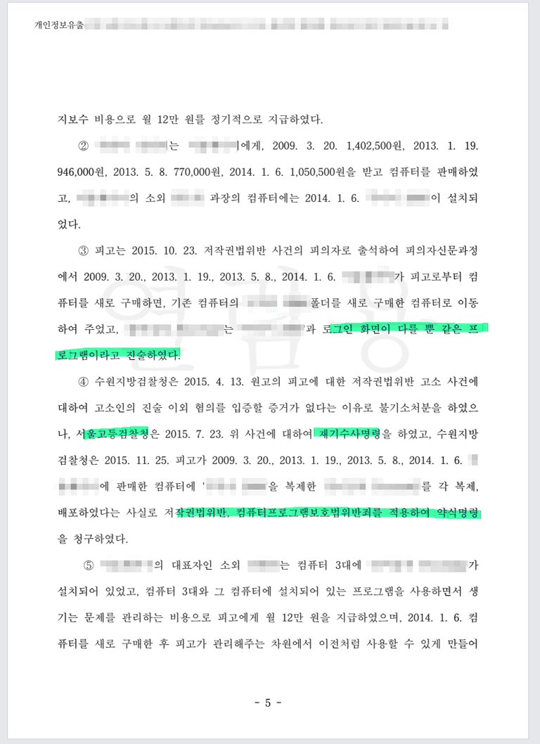 저작권법 고소로 처벌시키는 한편, 다시 5억원을 배상받은 사례