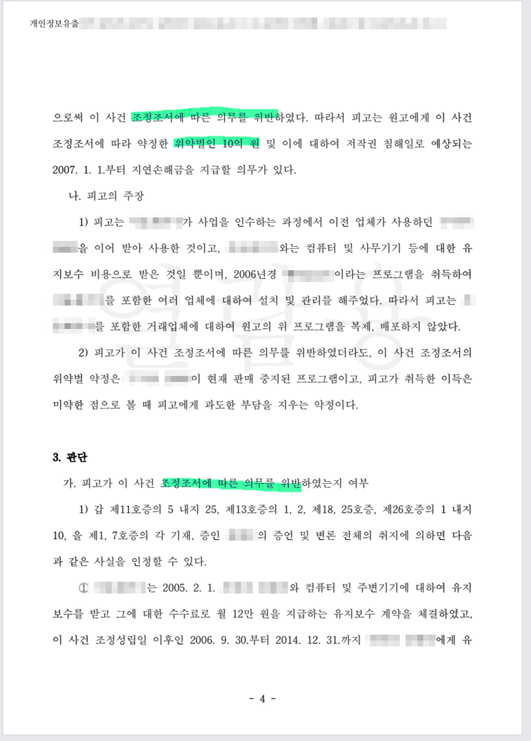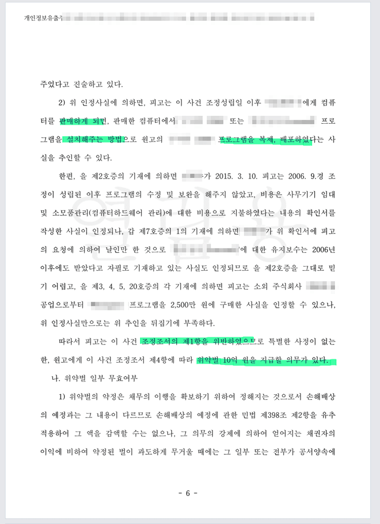 위약벌로 10억원 배상 조정조서 작성한 이후