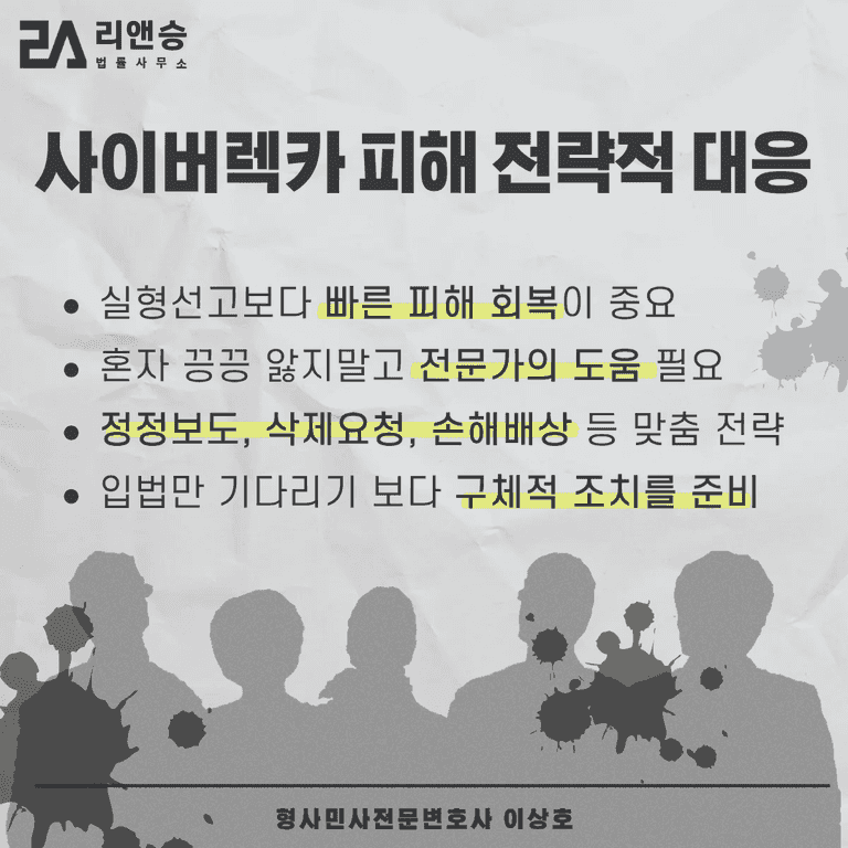 삭제만으로는 명예 회복이 어렵기 때문에 법적 조치 병행이 필요합니다.