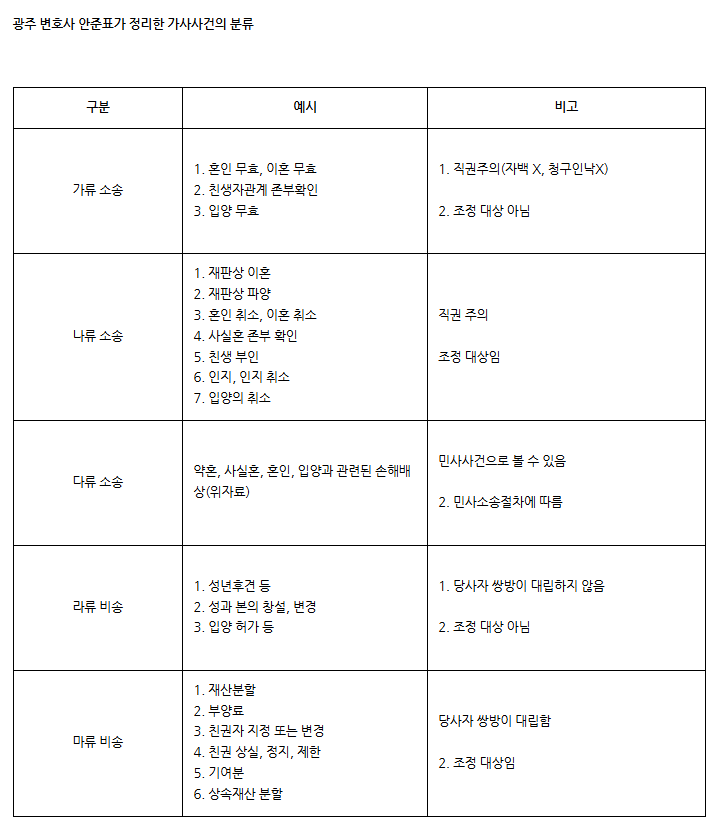 오늘은 가사사건의 종류에 대해서 알아보겠습니다.