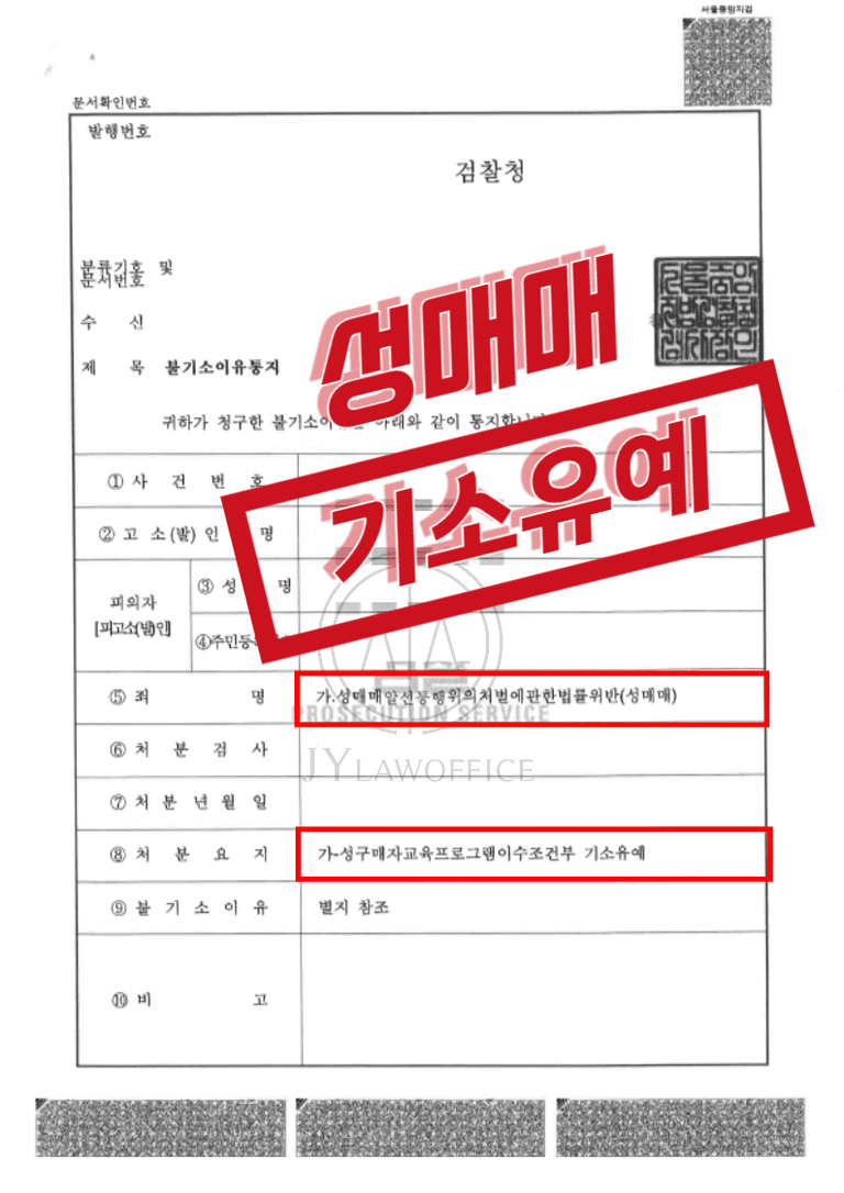 이와 같은 성매매 전문 변호사의 조력에 따라, 의뢰인은 성매매 혐의를 받았지만 기소유예의 불기소 처분을 받고 재판 없이 사건을 무사히 종결시킬 수 있었습니다.