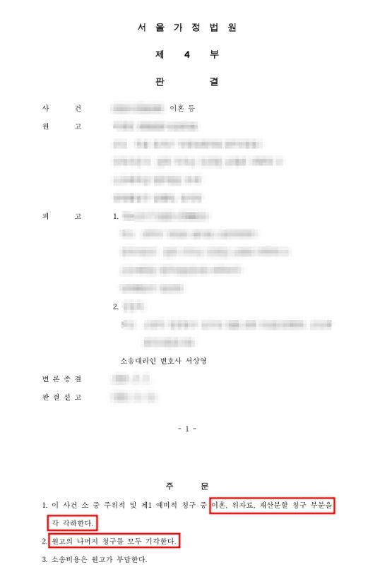 법원은 저희의 주장을 받아들여 의뢰인과 상대방의 교제는 협의이혼이 성립된 이후에 시작된 관계이며,