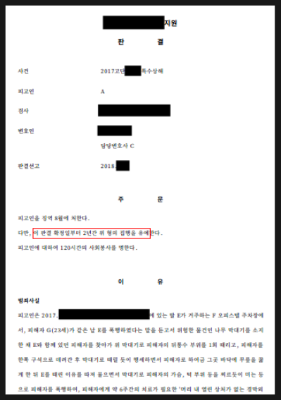 법원이 여러 정상참작 사유를 고려하여 징역형의 집행을 유예한 특수상해 사건을 소개드리려 합니다.