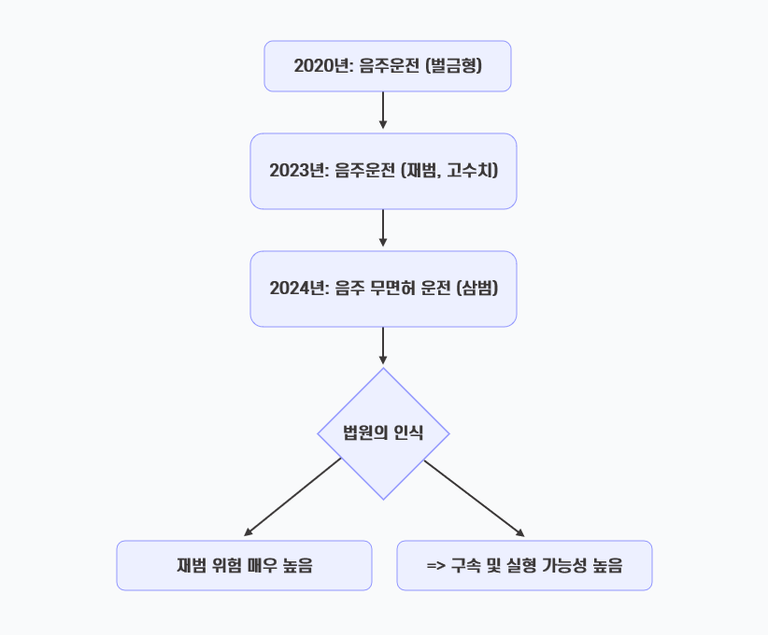 음주운전 재범 이상은 구속 가능성을 염두에 두어야 할 만큼 사안이 매우 엄격하게 다뤄집니다.