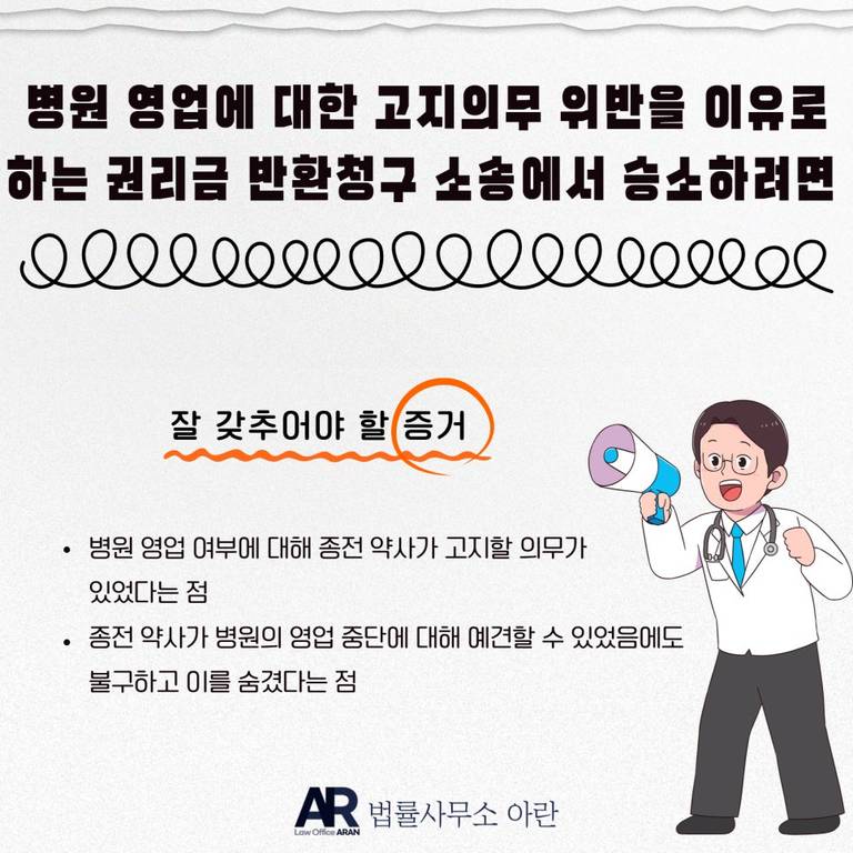 병원 영업에 대한 고지의무 위반을 이유로 하는 권리금 반환청구 소송에서 승소하려면