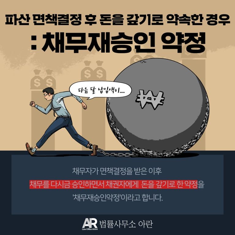 이와 같이 채무자가 면책 결정 후 다시 돈을 갚기로 한 약정을 들어 '채무재승인약정'이라고 합니다.