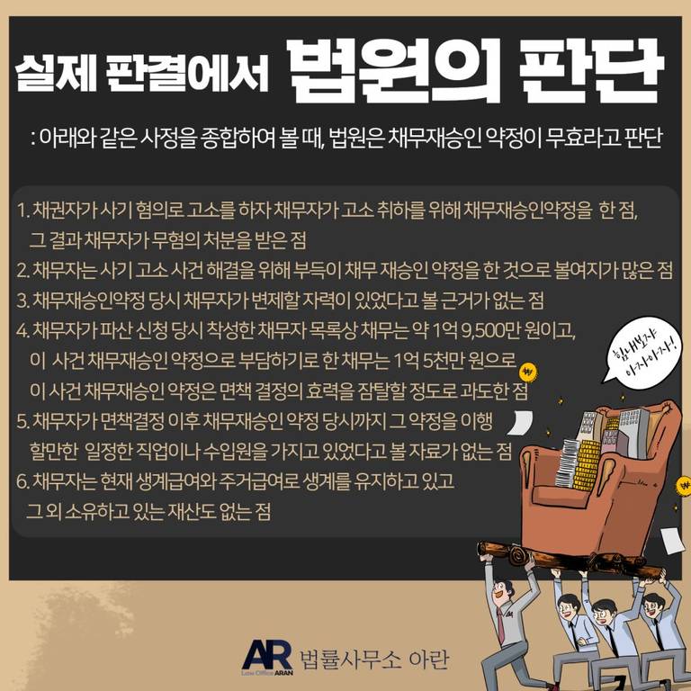 실제로 면책 후 채무자가 돈을 갚기로 약정하였더라도, 그 채무재승인 약정을 무효라고 본 판결을 살펴볼까요?