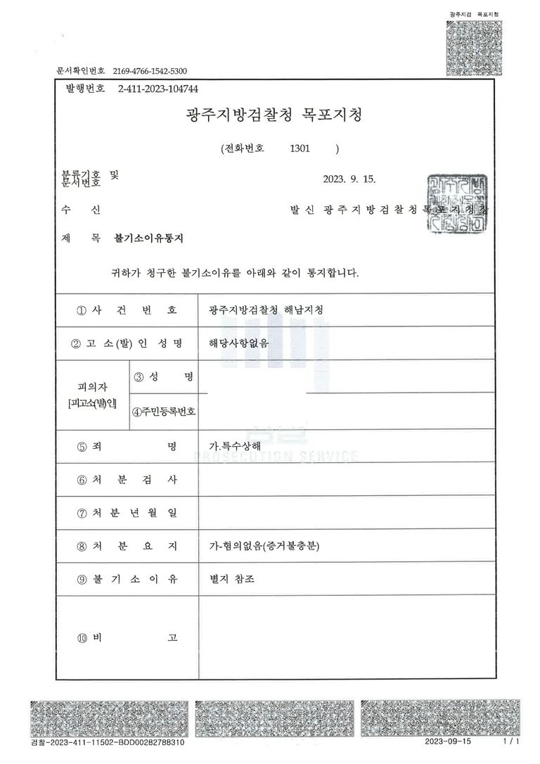 이에 따라 ‘폭행치상 및 특수상해’ 혐의에 대해 혐의없음(정당방위 인정) 처분이 내려졌습니다.