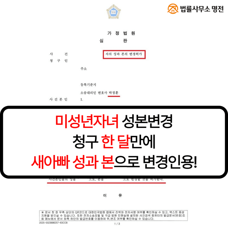 💡진행 한달만에 새아빠의 성으로 성본변경 인용!