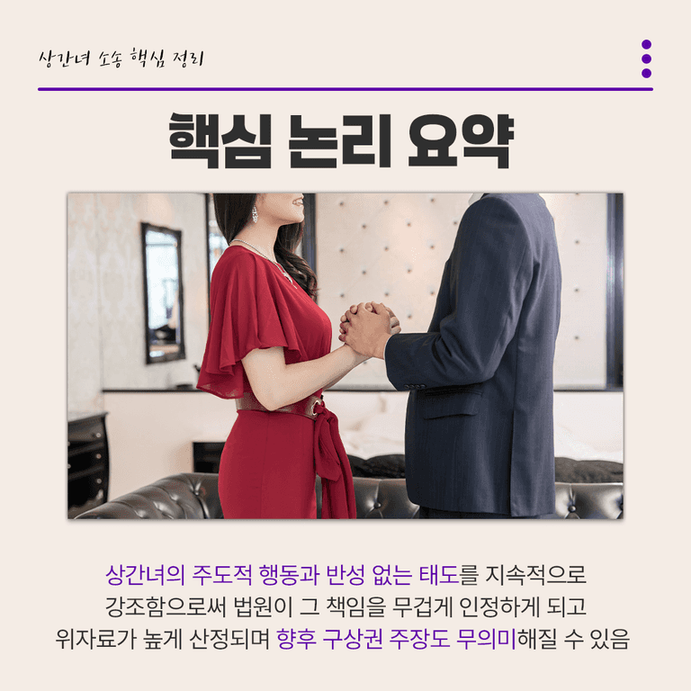 이 논리를 일관되게 강조하면 재판부는 상간녀의 책임을 더 무겁게 평가하게 되고,