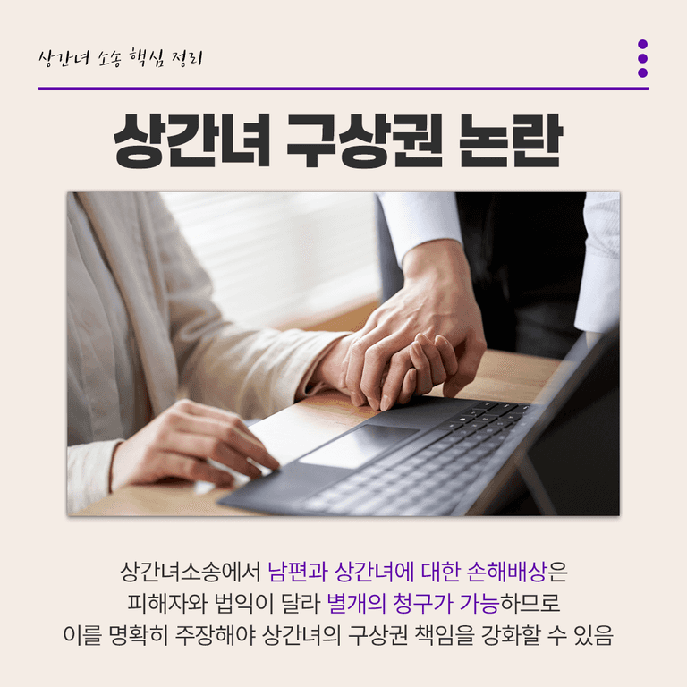 이 부분을 명확히 주장해야 구상권 문제에서도 상간녀의 실질적 책임을 더 크게 입증할 수 있습니다.