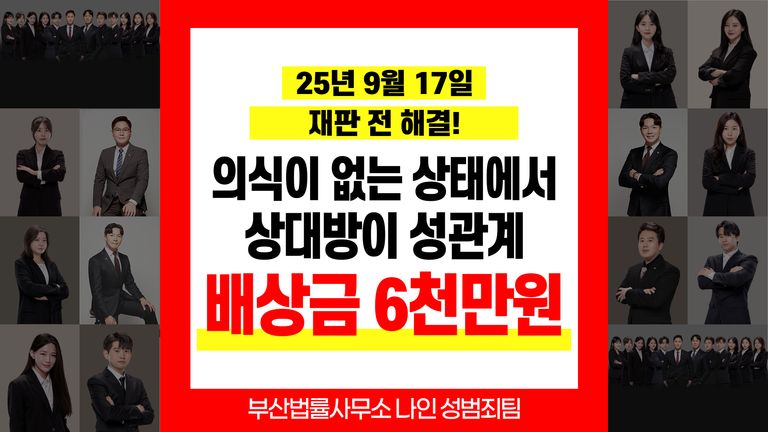 부산성범죄변호사 의식이 없는 상태에서 상대방이 성관계 배상금 6천만원