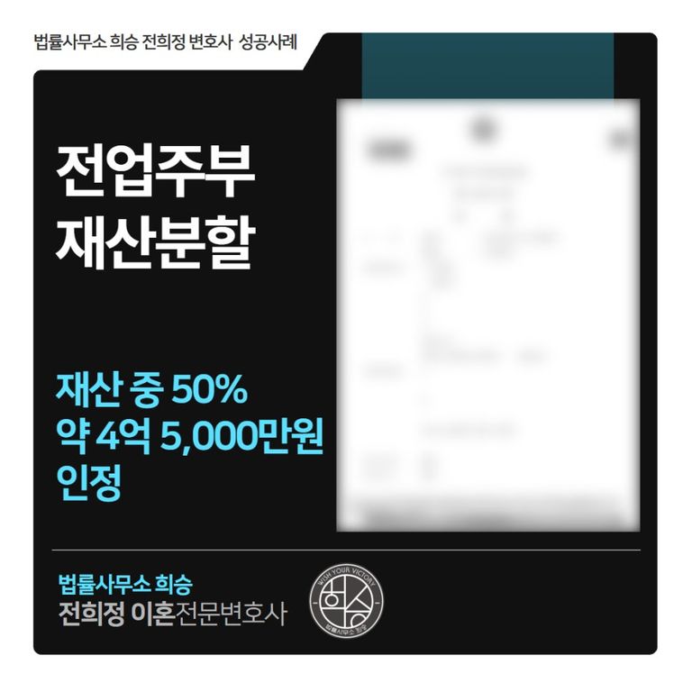 전업주부 재산분할 → 결과 : ‘재산 중 50%(약 4억 5,000만원)’ 인정