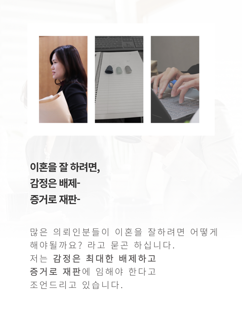 이 사건처럼 상대방이 이혼에 응하지 않더라도 조정이혼신청을 통해 이혼이 원만히 마무리되는 사례도 있기 때문에 이혼소송전 이에 대해 깊이 고민하는 것이 반드시 필요합니다.