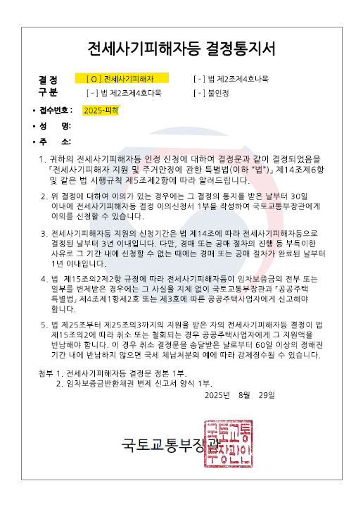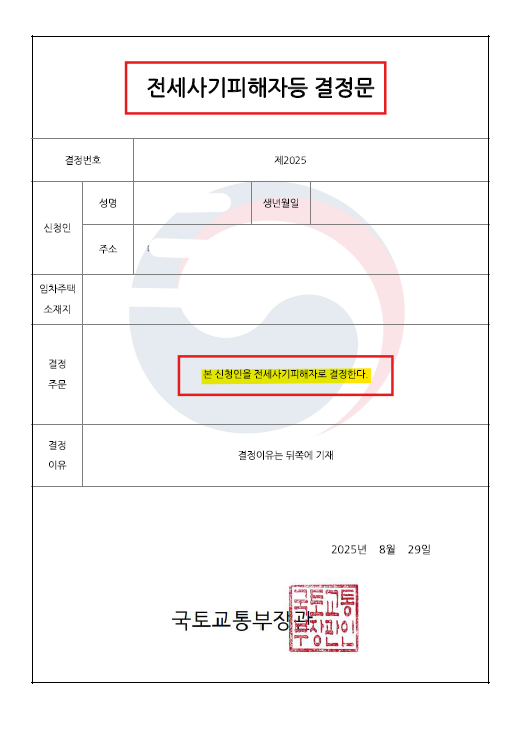 📄 “본 신청인을 전세사기피해자로 결정한다.”