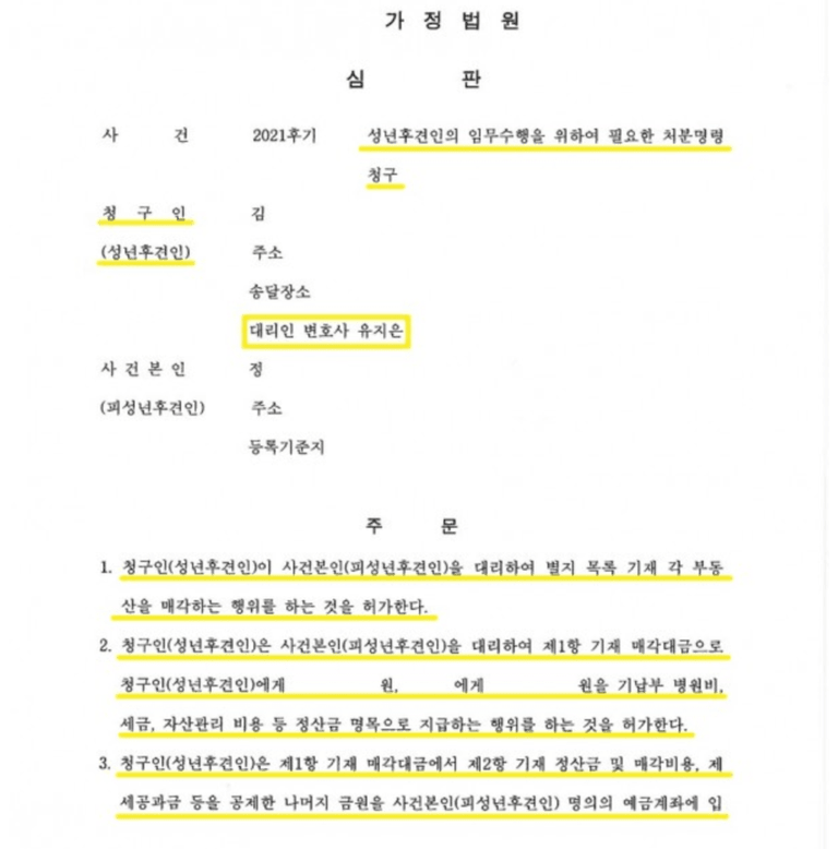 이와 함께 성년후견인 역할을 하는 법무법인 A가 B씨가 대주주인 회사의 주주총회 의결권을 행사하도록 허락했습니다.