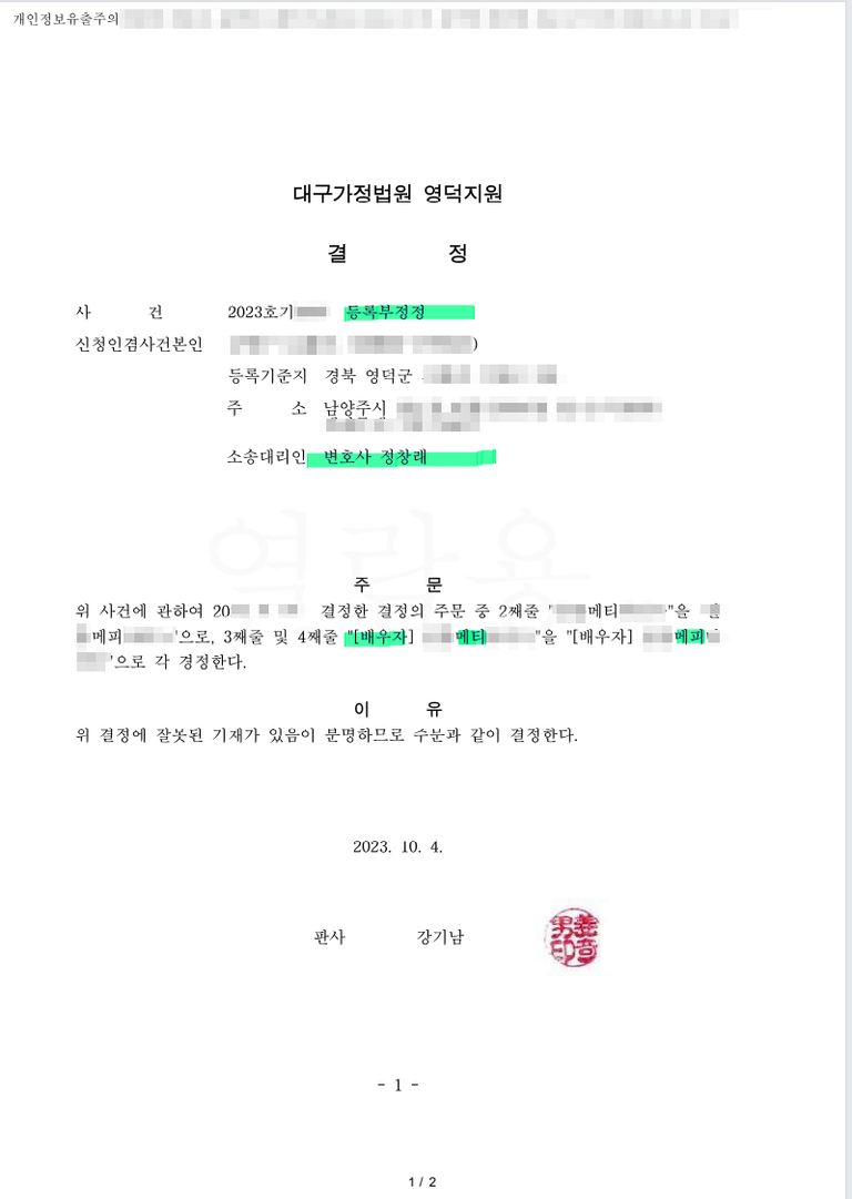 가족관계등록부 배우자 이름이 잘못되어 국민연금 등 못 받고 있는 상태에서
