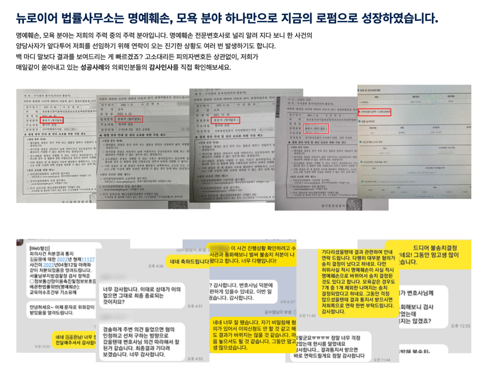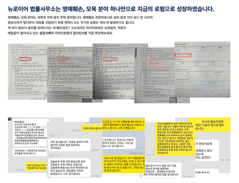 때문에 모욕죄 사건에서 정말 다양한 케이스를 해결해왔고, 이 분야는 저희가 가장 자신 있다 말씀드릴 수 있는데요.