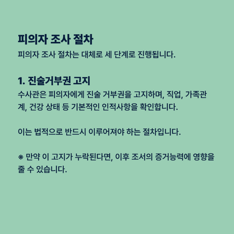 피의자 조사 절차는 대체로 세 단계로 진행됩니다.
