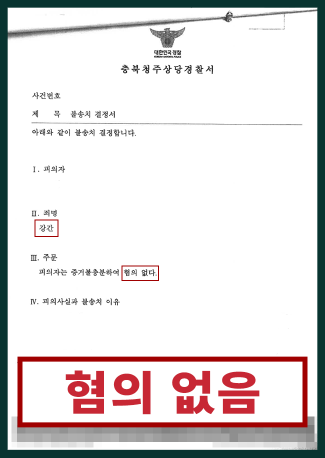 그 결과 A 씨는 경찰서 경찰 단계에서 강간 무혐의를 인정받을 수 있었습니다.