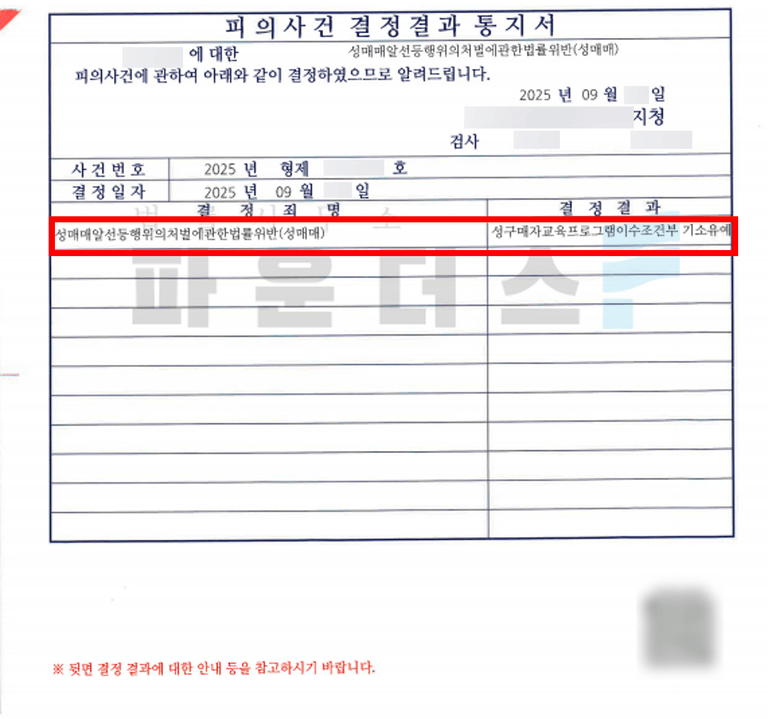 사건의 핵심키워드: 성매매 자수 / 성매매 기소유예 / 성매매 혐의 인정