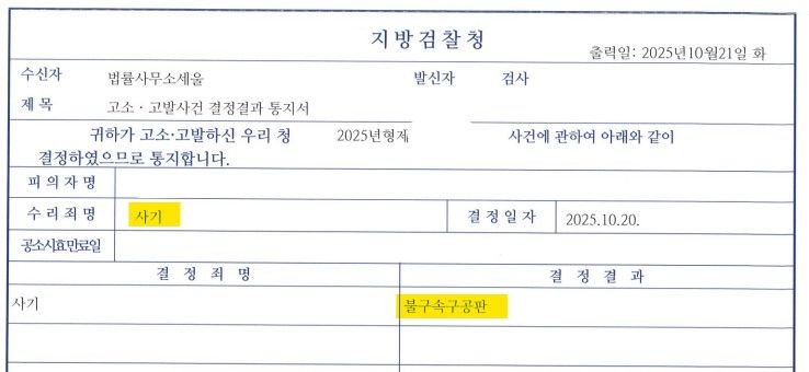 빠른 진행과 적극적인 소명을 통해 고소한지 약 3개월도 되지 않은 시점에서 검찰에서 혐의가 있다고 보아 기소함(불구속구공판)