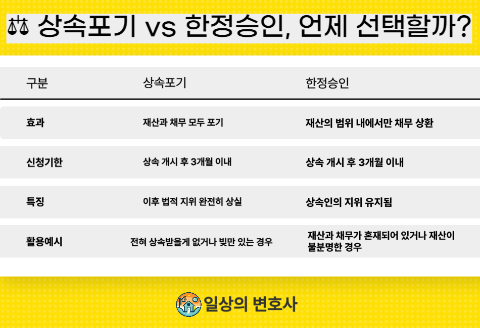 잘못된 판단으로 오히려 채무를 떠안을 수도 있기에, 전문 변호사의 조력을 통해 정확하게 처리하는 것이 안전합니다.