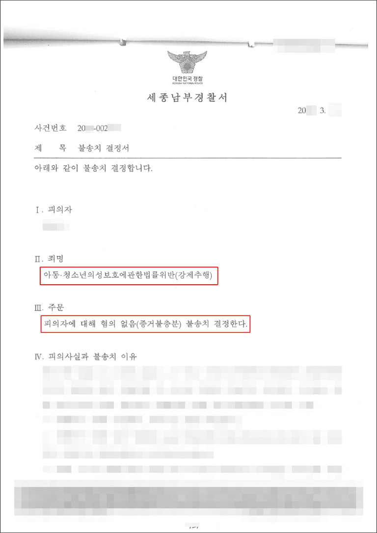 3. 수사기관은 증거 불충분을 이유로 ‘혐의없음 불송치’ 결정