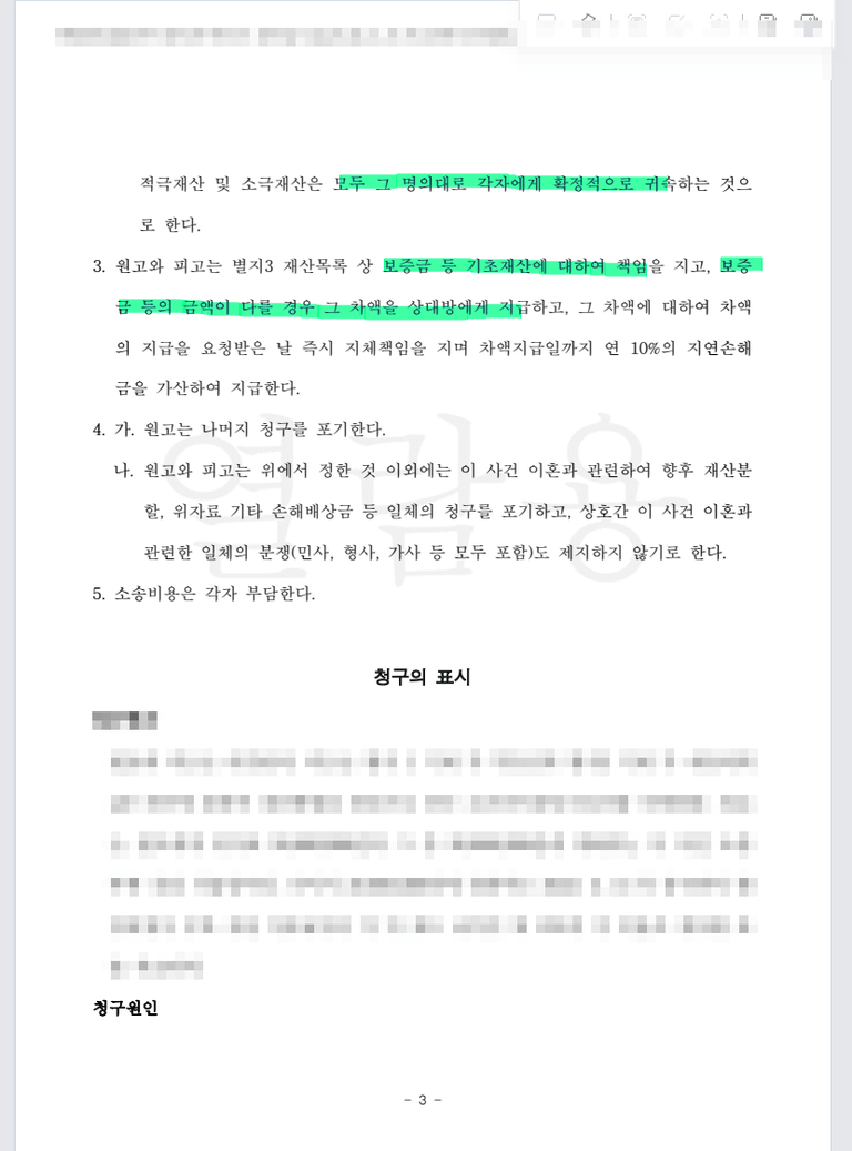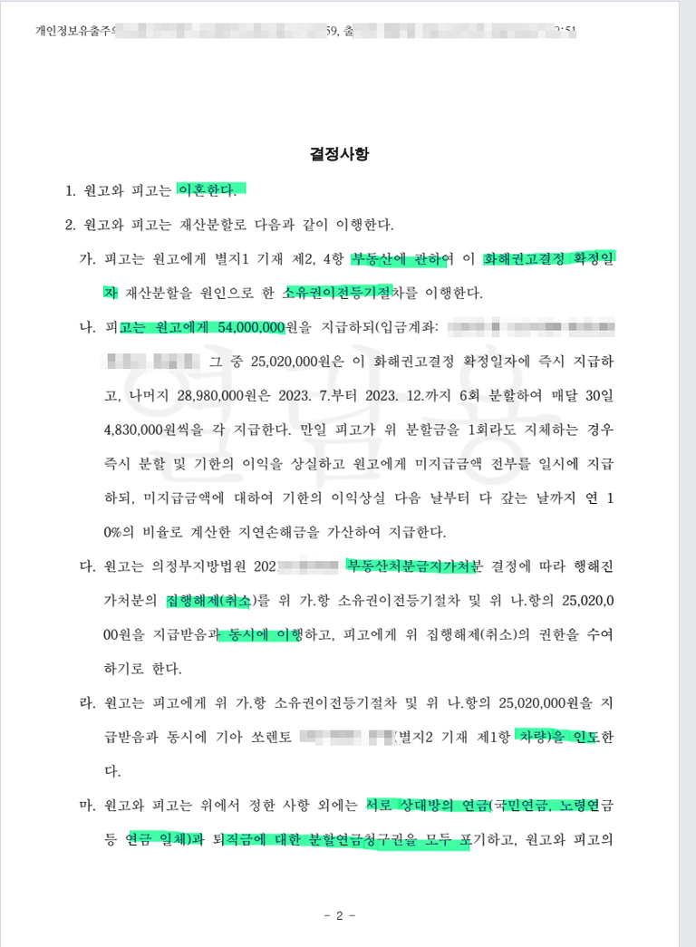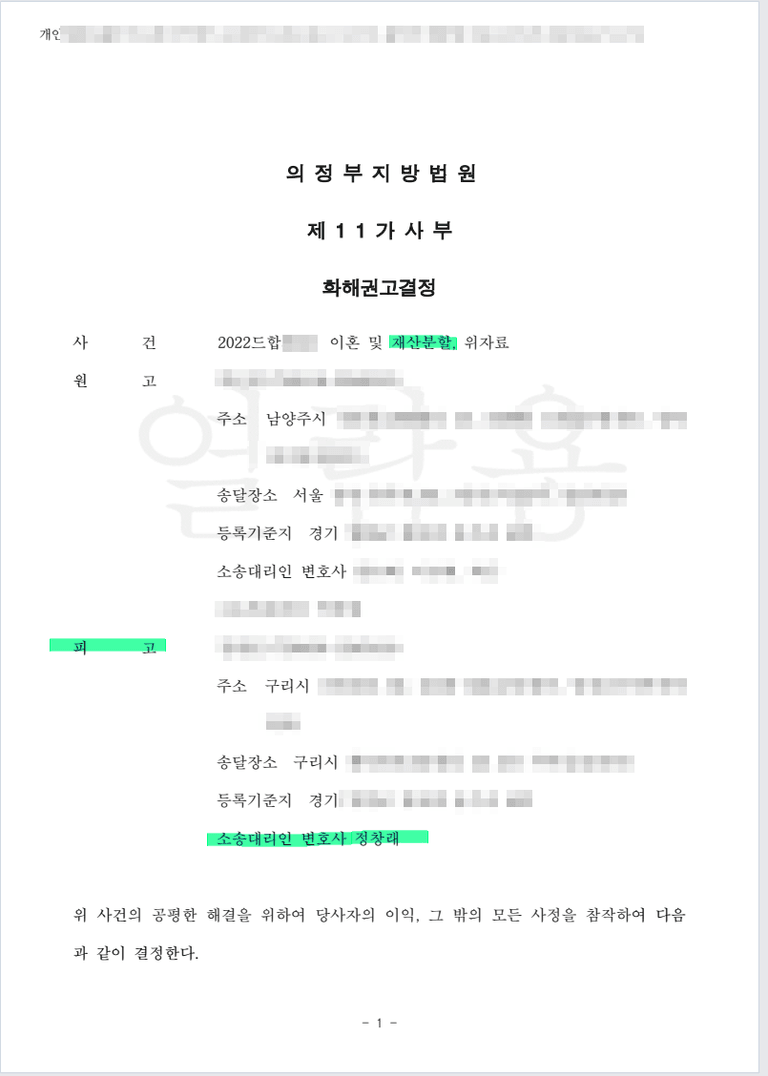 조정에 이르러 일부 부동산과 현금 등 재산을 받고