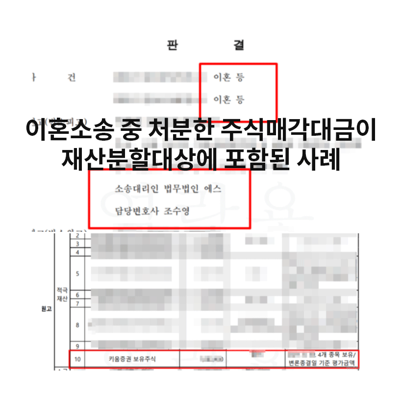 오늘은 이혼소송 중 매각한 주식매각대금이 재산분할대상에 포함될 수 있었던 사례를 소개해드리겠습니다.