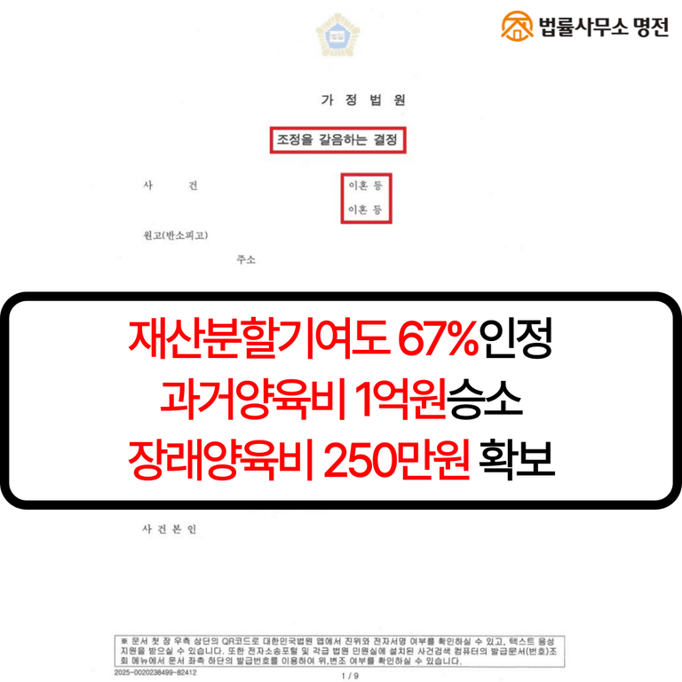 ✅의뢰인 재산분할 70%가량 인정,