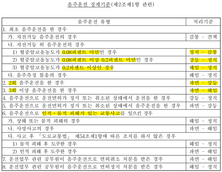 1. 공무원 음주운전 징계 수위 정리