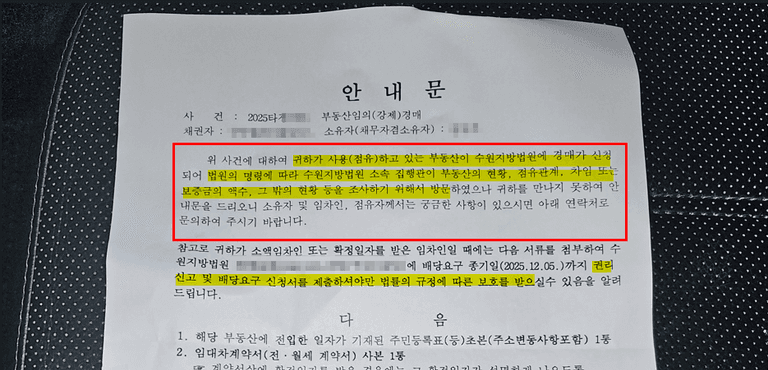 따라서 지금 바로 전입신고, 확정일자 확인, 배당요구 신청, 그리고 법률전문가 상담까지 모두 점검해 두셔야 합니다.