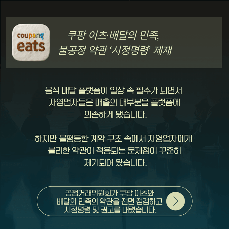 ![[약관#5] 쿠팡 이츠 배달의 민족 불공정약관 시정명령 제재](/_next/image?url=https%3A%2F%2Fd2ai3ajp99ywjy.cloudfront.net%2Fuploads%2Ftitleimage%2Foriginal%2F5b1a14703caf680b54b245ea-original.jpg&w=3840&q=75)