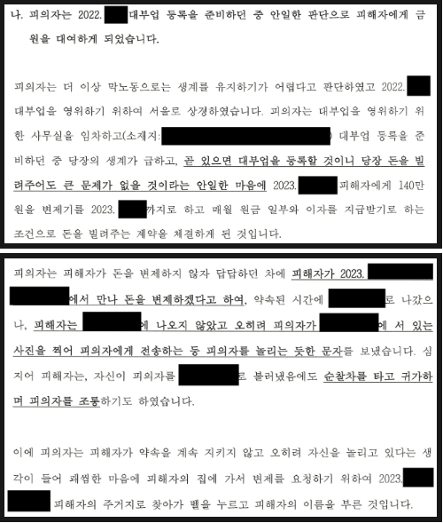 등록 절차가 마무리되기 전 생활비가 급해 등록 없이 일시적으로 금전을 대여한 것이 문제의 발단이었습니다.