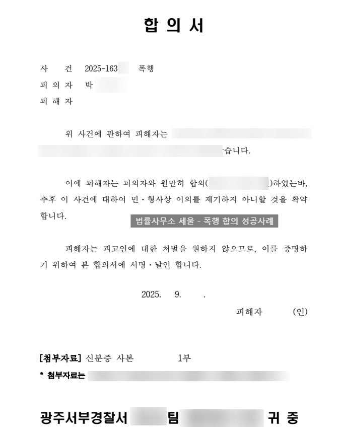 피의자 또한 납득하여 피해자와 합의 진행 -> 하루 만에 합의 완료