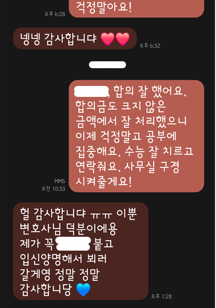 의뢰인은 학업에 다시 집중할 수 있게 되었음