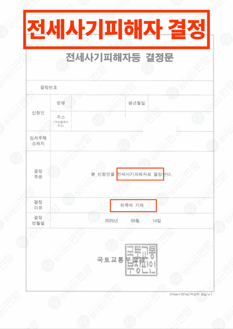 이 요건을 충족해야만 ‘전세사기피해자등 결정문’을 받을 수 있습니다.