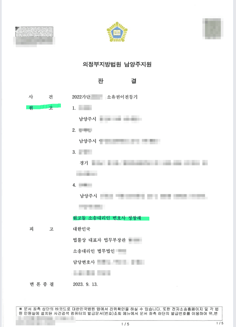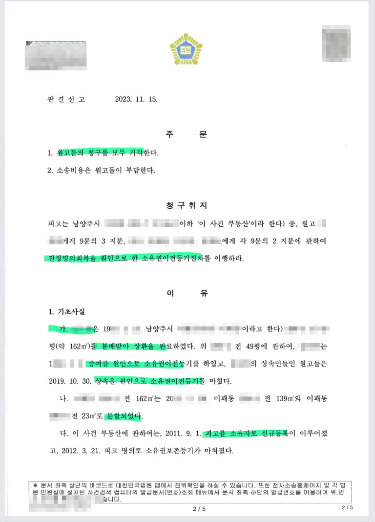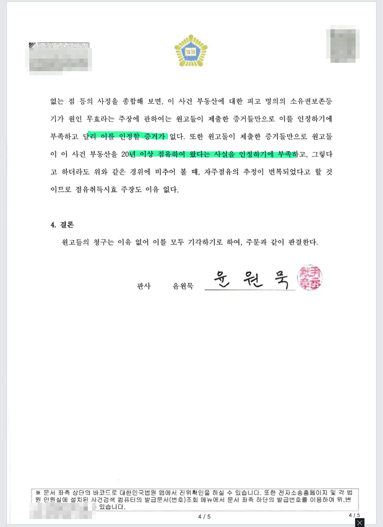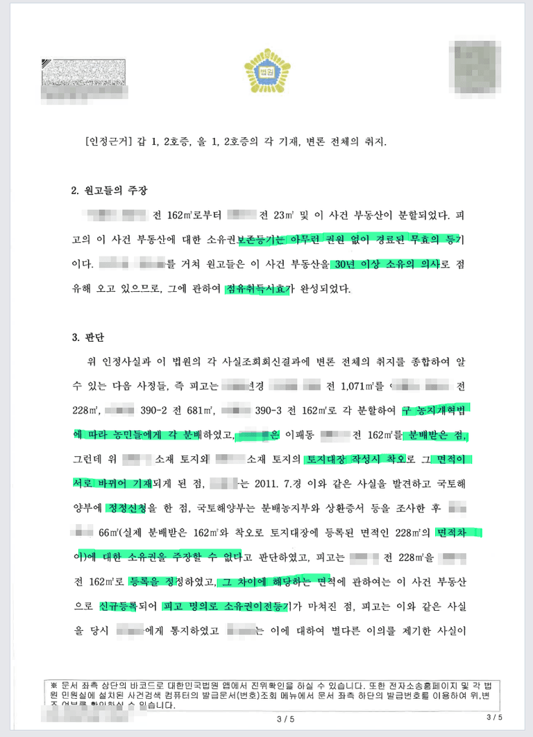 원고들 할아버지 때 불하받아 이후 증여 및 상속을 거쳐 등기를 완료하였는데