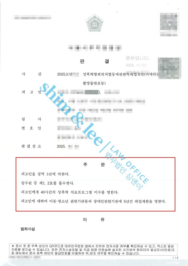- 결국 가해자는 촬영물 유포 혐의로 징역 1년, 성폭력 치료강의 40시간, 취업제한 5년의 실형을 선고받았습니다.