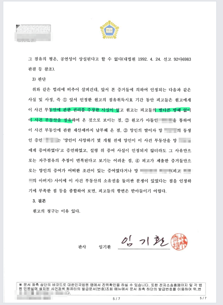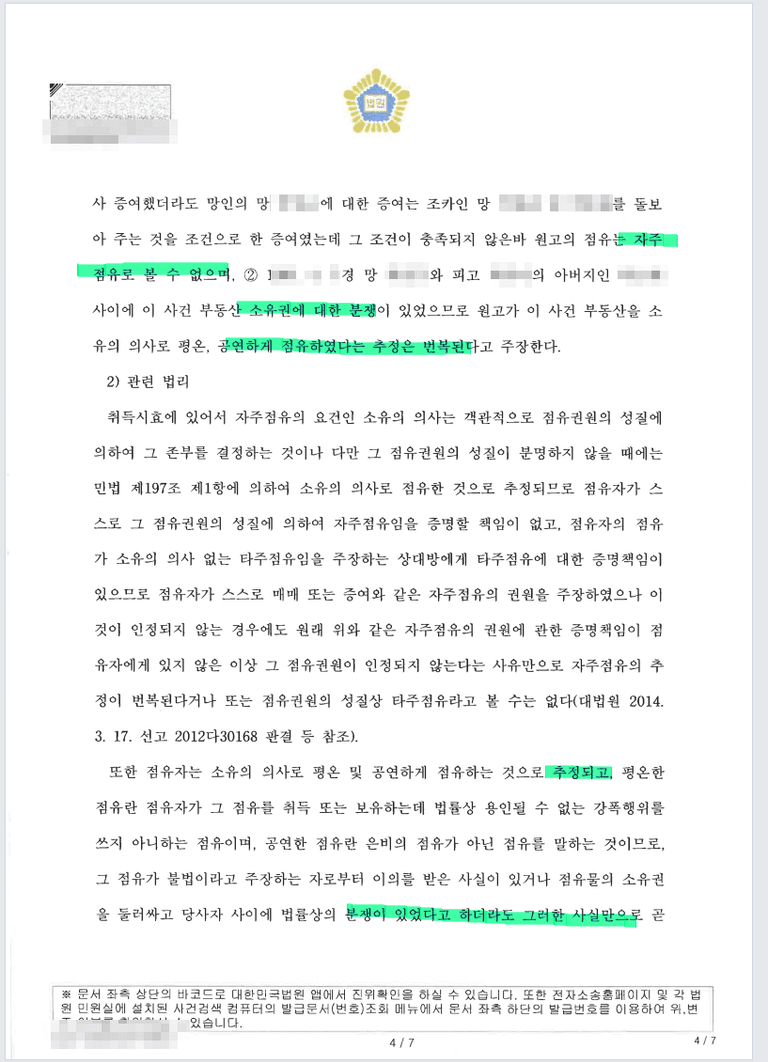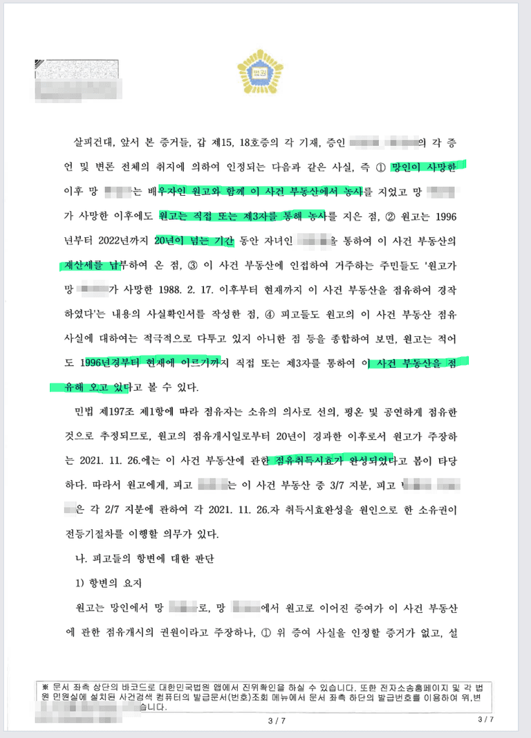 그 사실 자체를 모르고 있던 상태에서 그 토지를 20여년간 점유취득시효로 뺏긴 사례