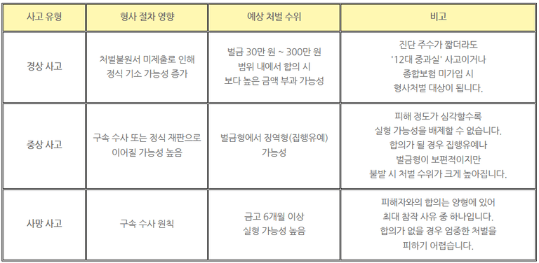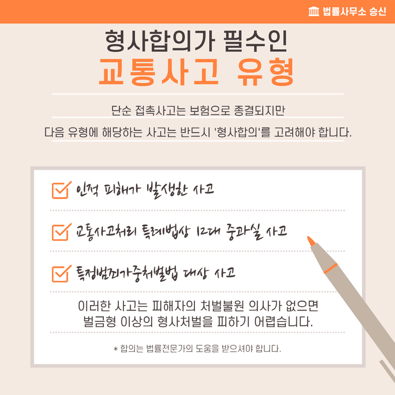 다음 유형에 해당하는 사고는 반드시 '형사합의'를 고려해야 합니다.
