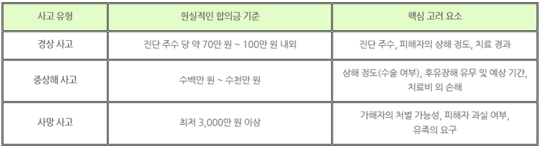 보험사가 제시하는 금액(민사 합의금 기준)보다 높게 책정되는 것이 일반적이며
