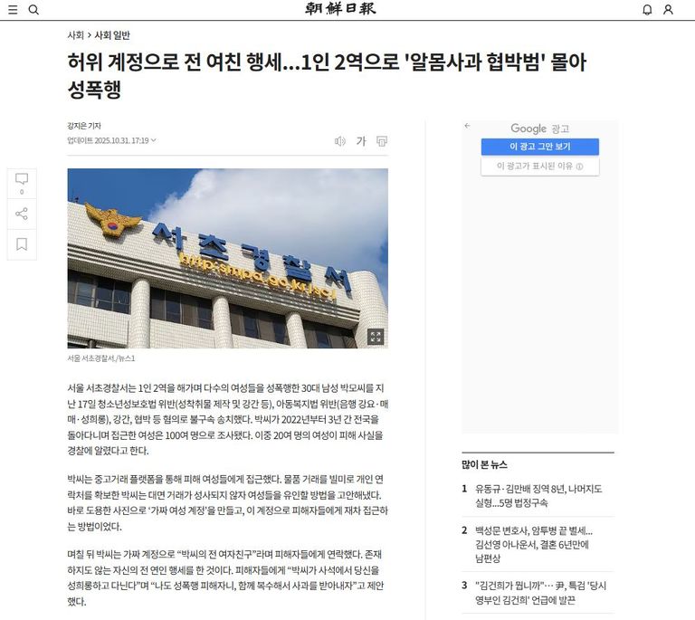이번 사건은 ‘1인 2역’이라는 기괴한 수법으로 여성을 속이고 통제한 뒤, 이를 악용해 성폭행을 이어온 사례로, 피해자만 수십 명에 이르며 미성년자도 다수 포함되어 있습니다.