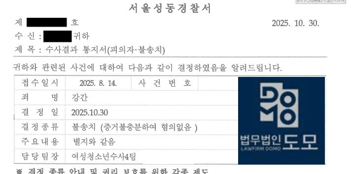 검찰은 ‘피해자의 진술 외에 범행을 뒷받침할 증거가 없고, 정황상 성관계가 자발적이었을 가능성이 높다’는 이유로 혐의없음(증거불충분) 처분을 내렸습니다. 변호인의 초기 대응이 결정적인 역할을 하였으며, 의뢰인은 장기간의 수사로부터 벗어나 사회적 평판과 직장생활을 무사히 회복할 수 있었습니다.사건의 의의