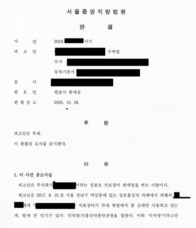 서울중앙지방법원은 변호인의 주장을 받아들여 피고인에게 무죄를 선고했습니다.