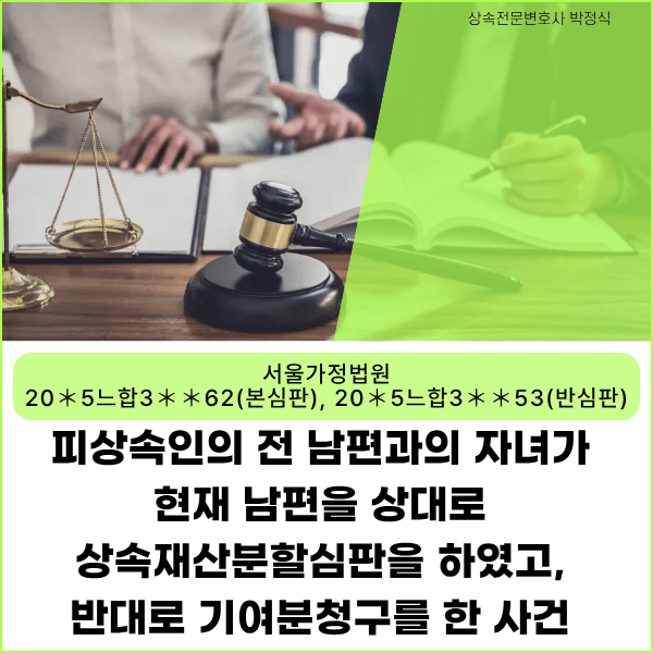 피상속인 사망후 전남편과의 사이에서 태어난 자녀와 상대방 사이에 서로 협의가 되지 않아서 전 남편의 자녀들이 현재의 배우자를 상대로 상속재산분할심판청구를 하였고, 이에 상대방은 기여분청구를 하게 된 것입니다.