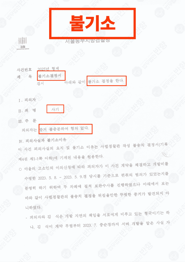 결국 본 사건은 형사 절차에서 ‘불기소(혐의 없음)’로 종결되었습니다.