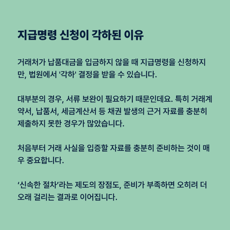 한 사업주는 거래처가 납품대금을 입금하지 않자 ‘지급명령신청’ 절차를 밟았습니다. 지급명령은 채무자가 이의를 제기하지 않으면 소송 없이 신속하게 대금을 받을 수 있는 제도인데요.
